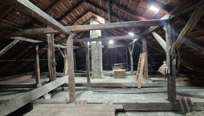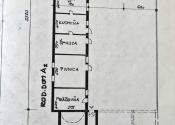Časť B : nutná rekonštrukcia ( 2 x izba, kuchyňa, špajza, práčovňa, skladovací priestor ). Nad bytom sa nachádza priestranná povala, zastrešená plechovou krytinou. Vodovodná prípojka , kanalizácia vedená do žumpy.