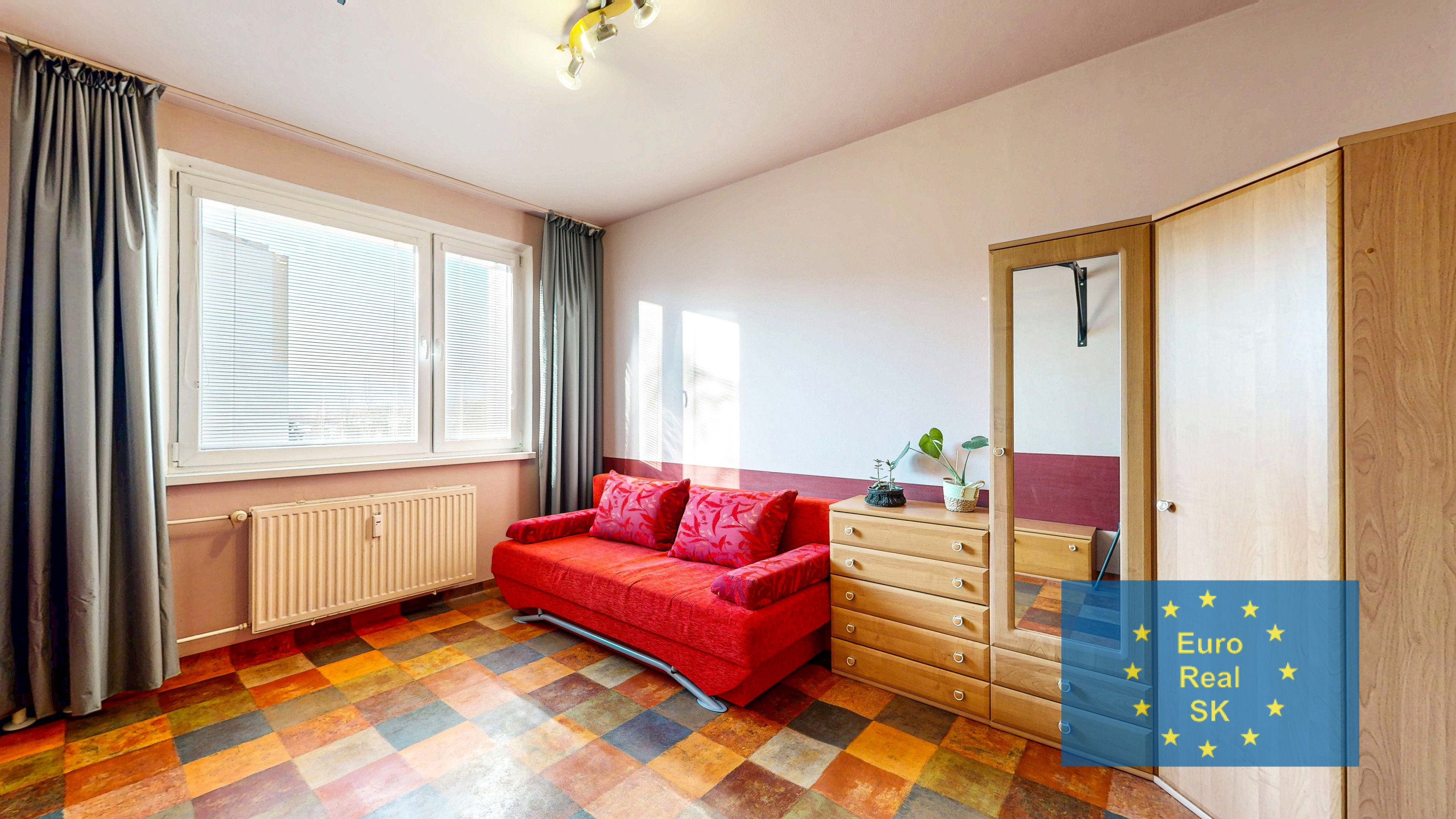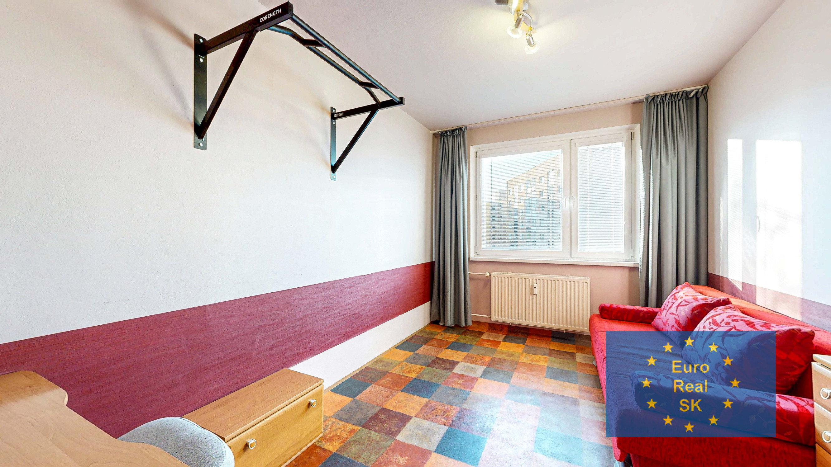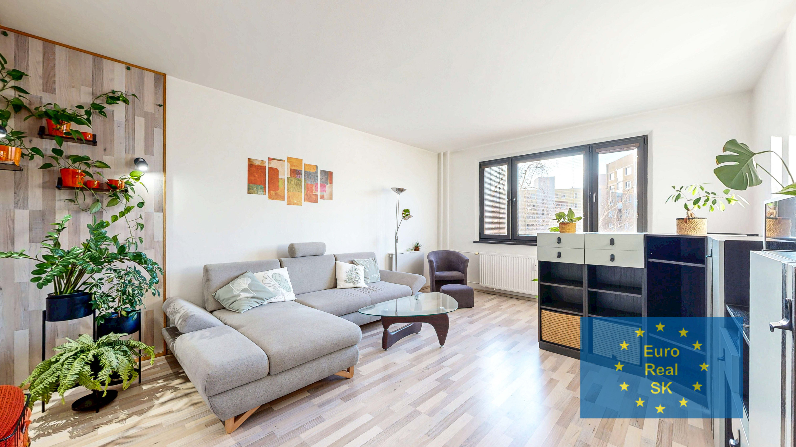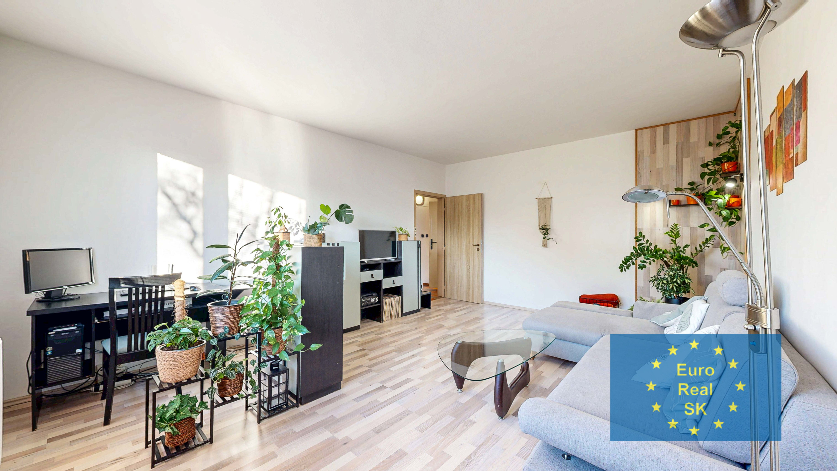 Vybavenie: v celom byte stierky, vstupné dvere bezpečnostné s protihlukovou úpravou, plastové okná