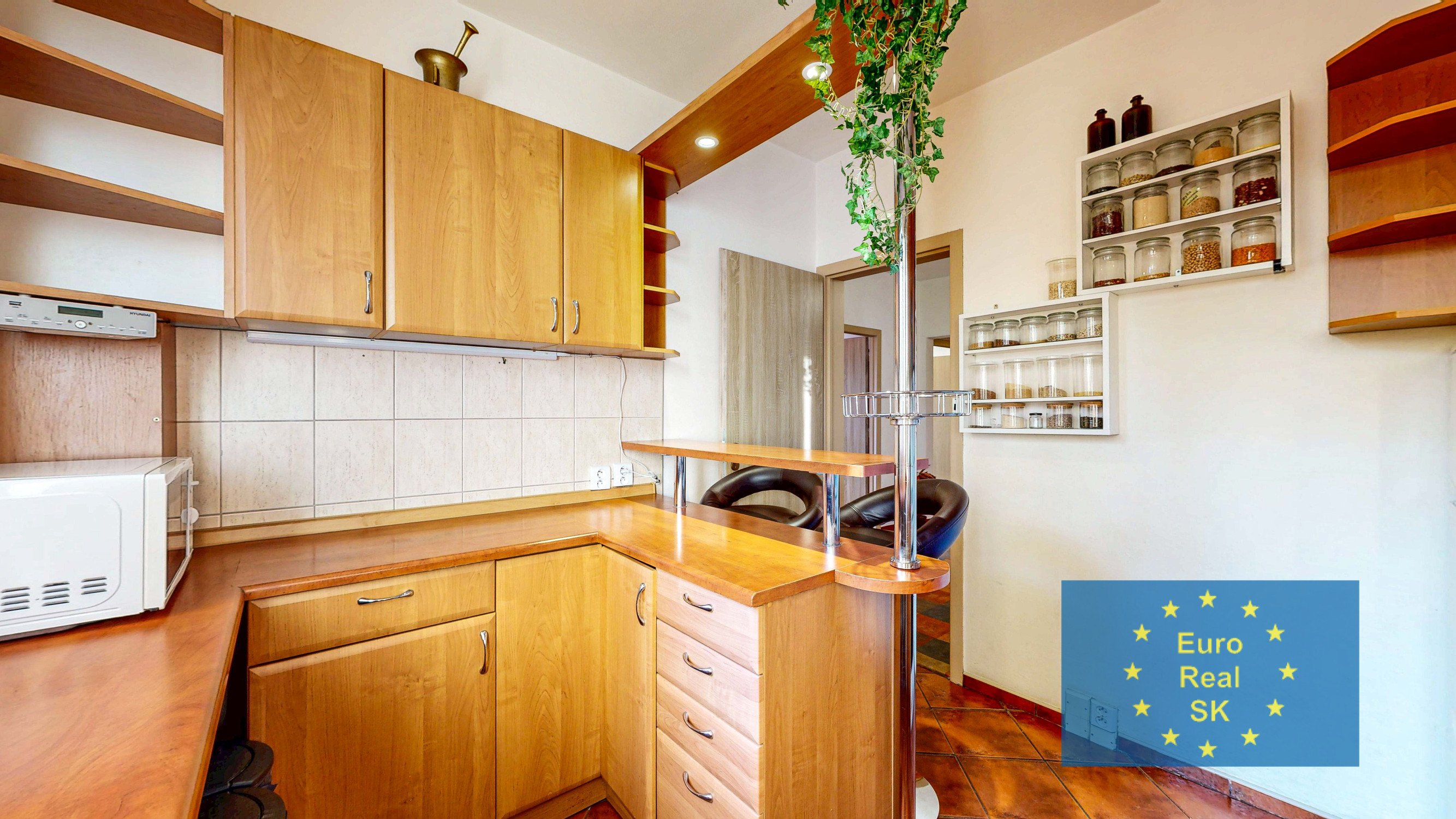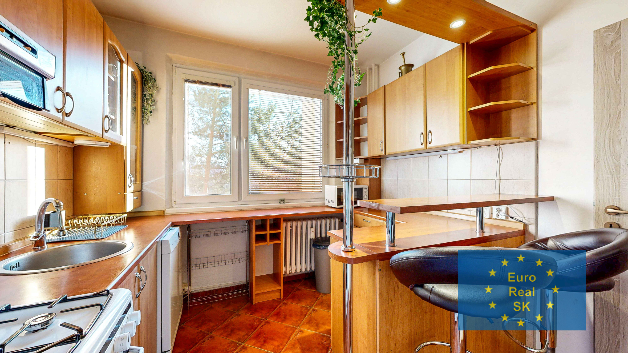 > kuchyňa – keramická dlažba, kuchynská linka,