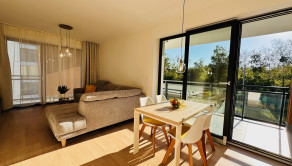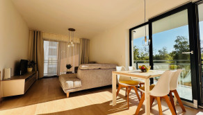 Členenie: vstupná predsieň, obývacia izba spojená s kuchyňou, spálňa, kúpeľňa, WC, veľká terasa.